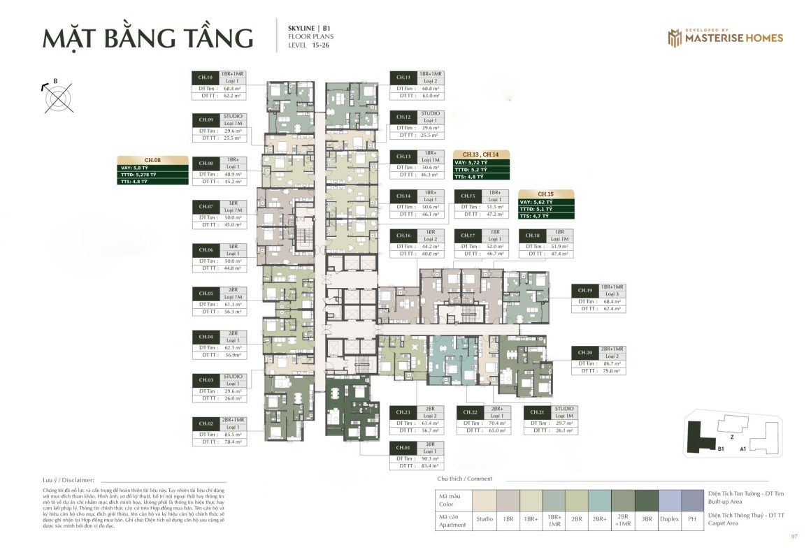 1BR+ | 51.9 | 47.4 | 121 – 130tr/m2 | 107-115tr/m2 | 98-105tr/m2 |