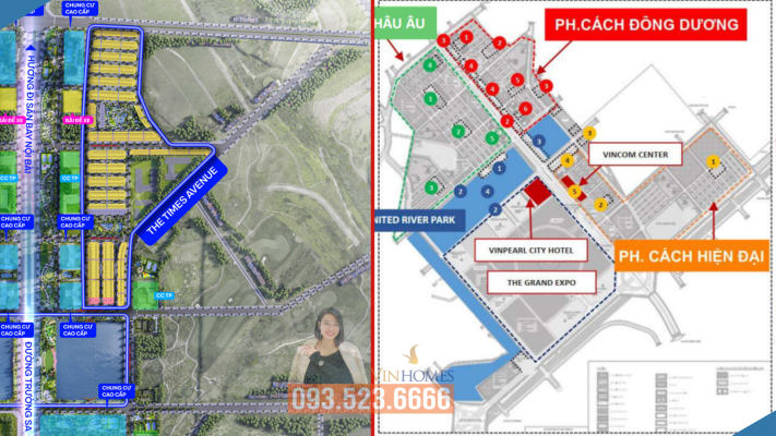 Điểm nhấn của phân khu The Times Avenue là không gian xanh rộng lớn của công viên, mật độ xây dựng thấp cùng lối kiến trúc hiện đại của các sản phẩm được thiết kế tối ưu vừa để ở vừa kinh doanh nhằm khai thác tối đa tiềm năng từ vị trí đắc địa mang lại. Tọa lại ngay cạnh quốc lộ 5 kéo dài, điều này mang lại kết nối giao thông vô cùng thuận tiện và tiềm năng kinh doanh cho các sản phẩm thấp tầng, cùng shophouse khối đế các tòa chung cư.